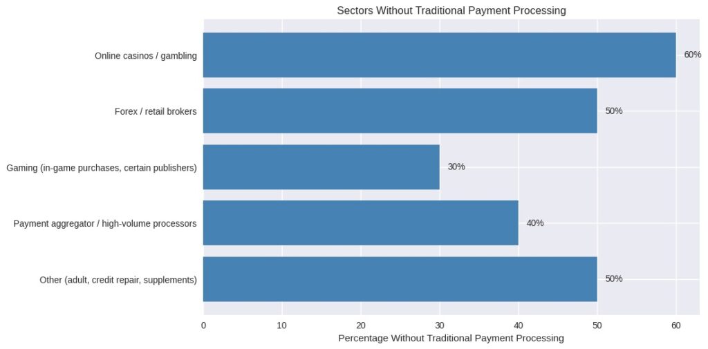3. High-risk merchant support (online gaming, forex, brokers) via integrated crypto + card gateway.