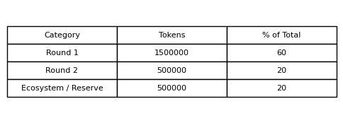 • Distribution: to be detailed in the final token allocation schedule (e.g., pre-sale buyers, ecosystem funds, reserves for growth, marketing, partnerships)